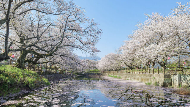 満開の時期はもちろん、散った花びらが徐々に水面を埋め尽くしていく様子も見どころなんです...