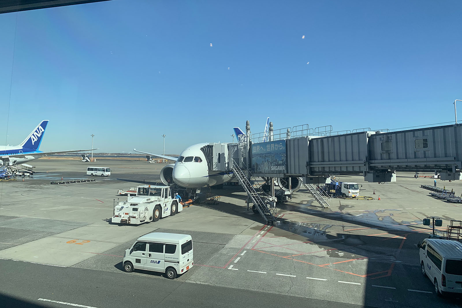 前日の東京の雪の関係もあって45分遅れで飛行機が出発。