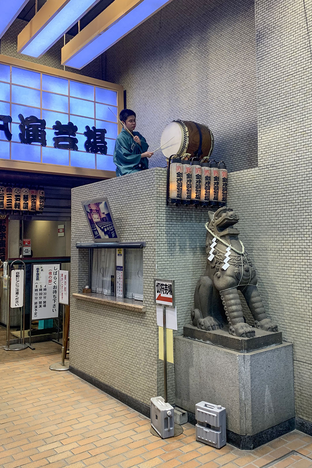 終演後は受付の上で太鼓が打ち鳴らされ、暗くなった街に大きな音が鳴り響きます。