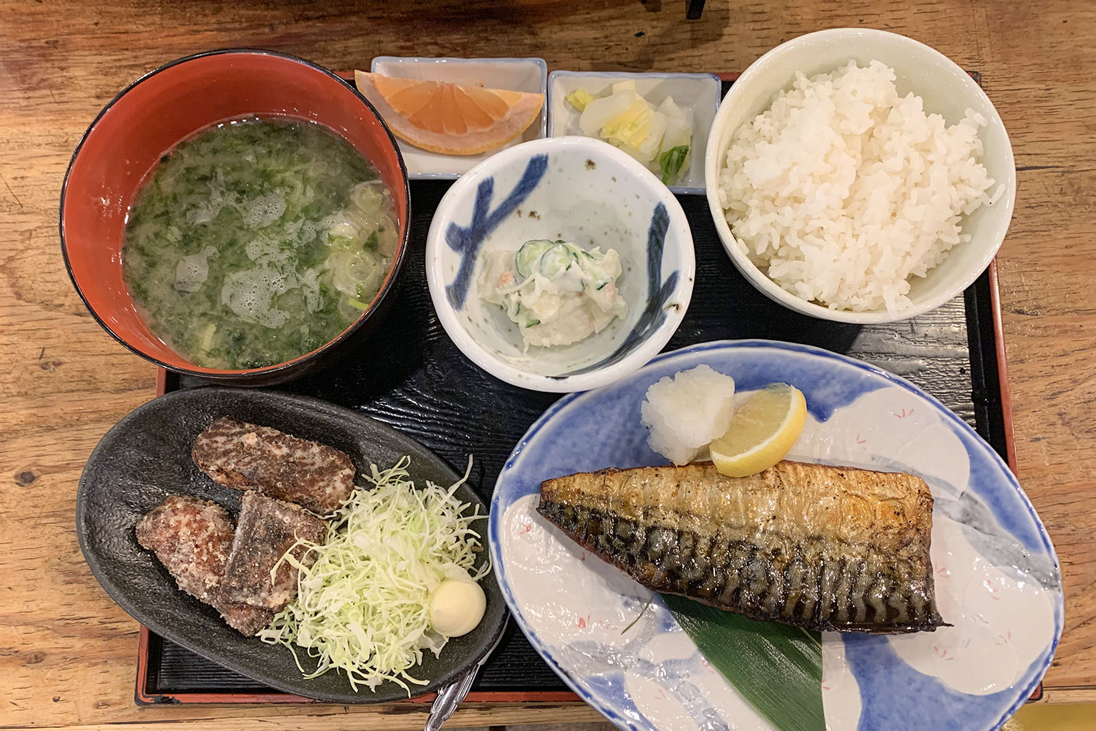 結構立派な定食。飲むつもりはなかったんですが周りのお客さんにつられて生中を追加。