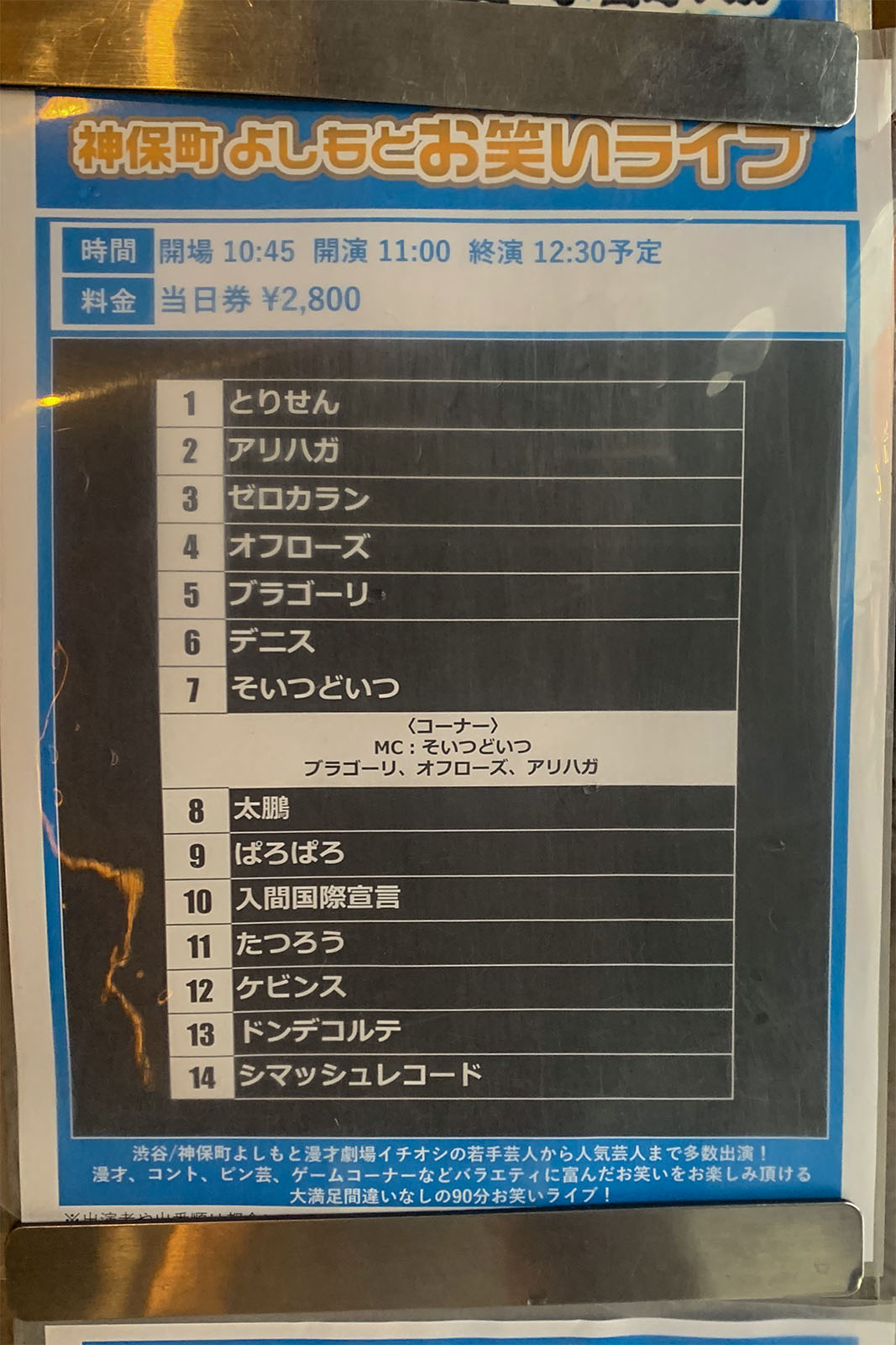 開演の10分前くらいに入場したんですが、若手芸人による前説がすでに始まっていました。