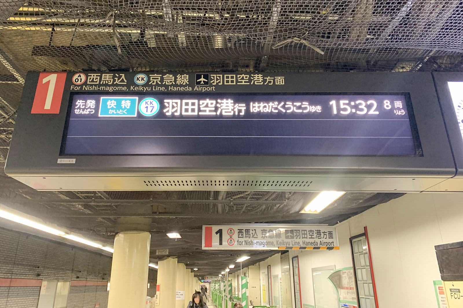羽田空港はエリア外のため京急を利用する場合は、泉岳寺までの切符(370円)を別に購入する必要があります。