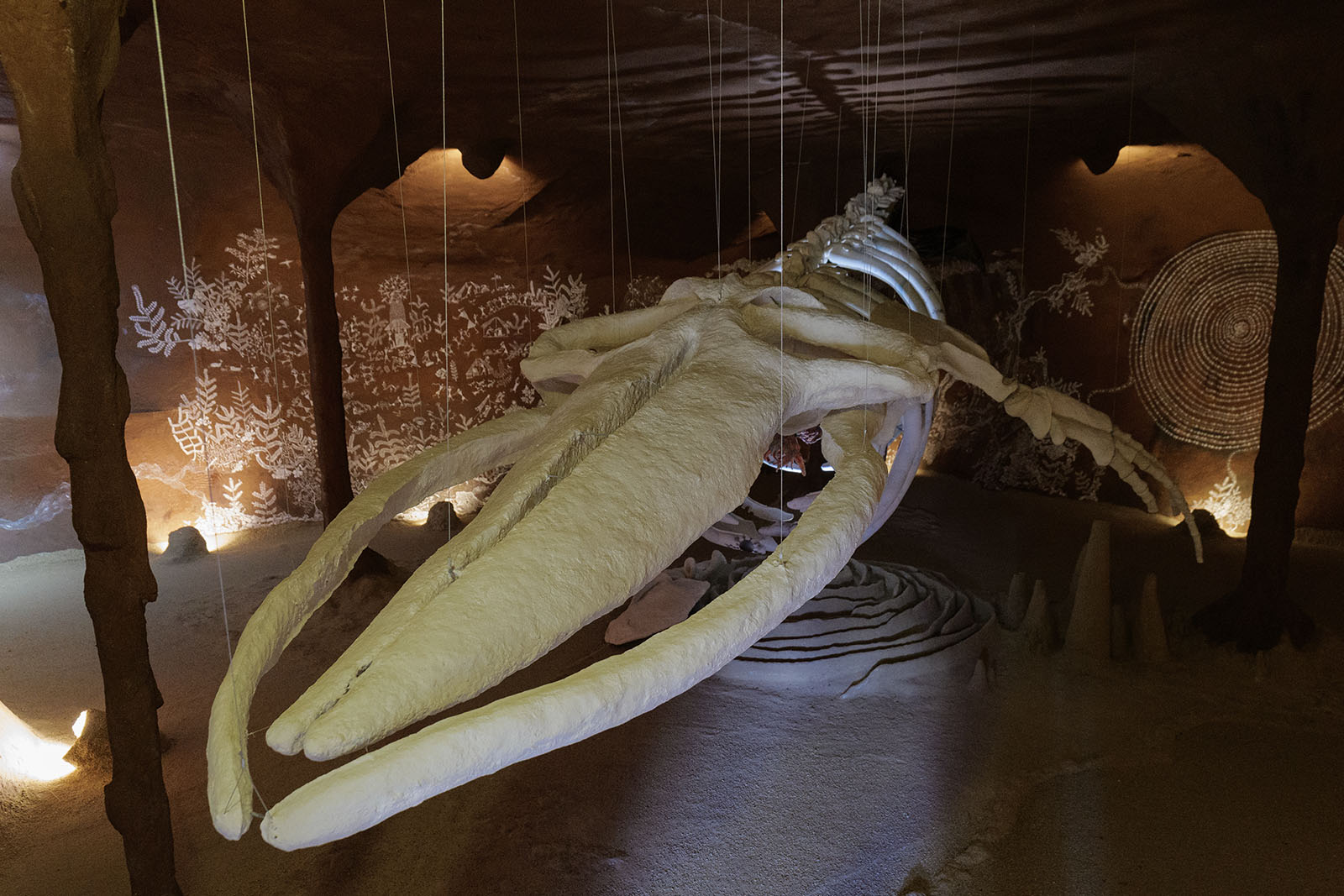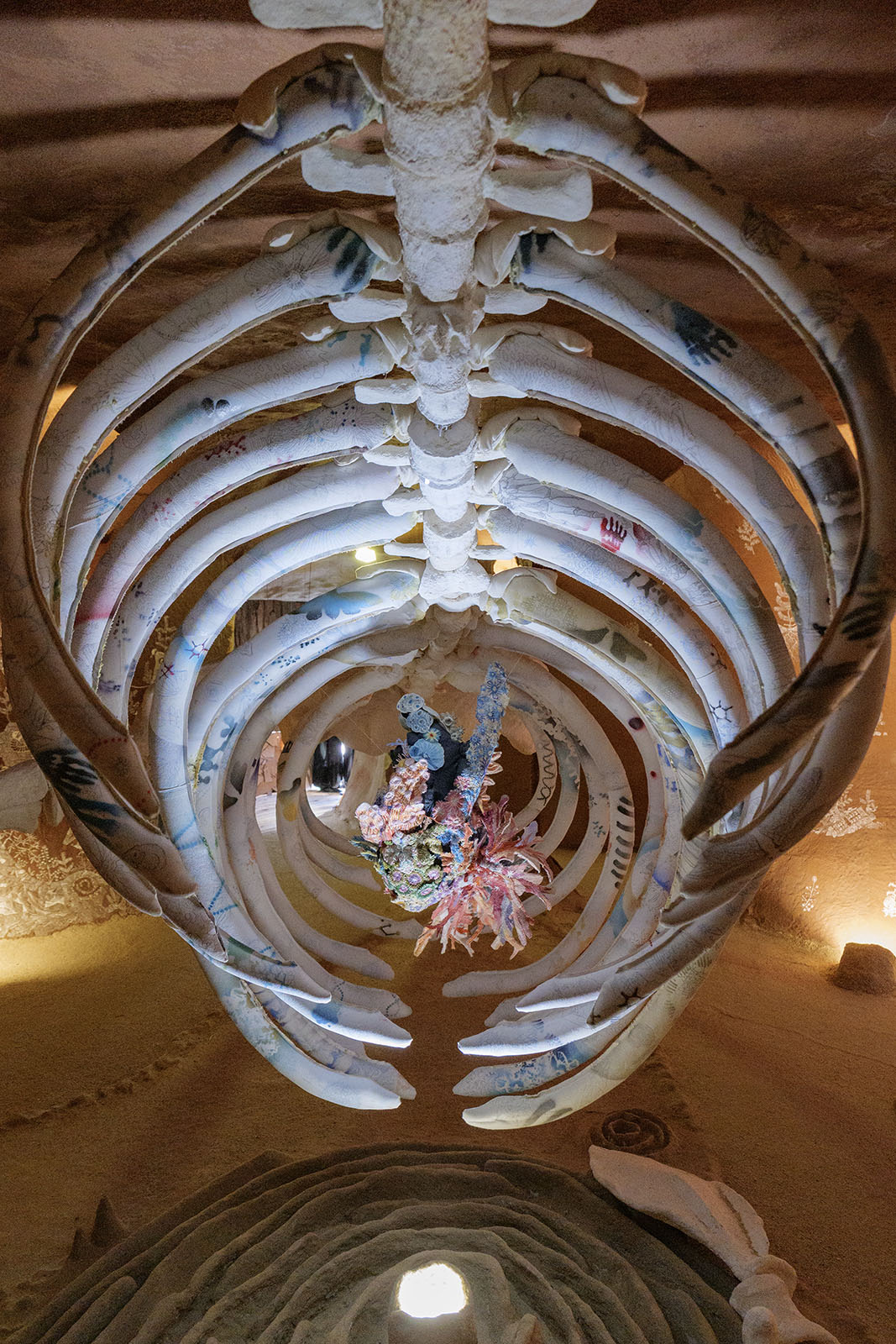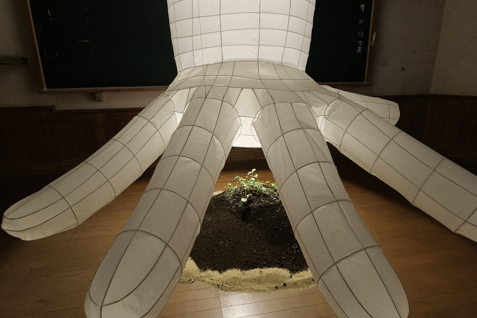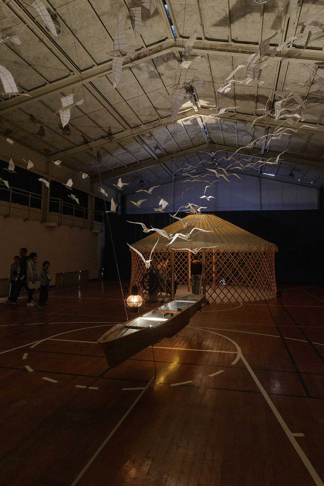 廃校になった中学校の体育館を利用した、中国・内モンゴル自治区出身の作家による作品。
