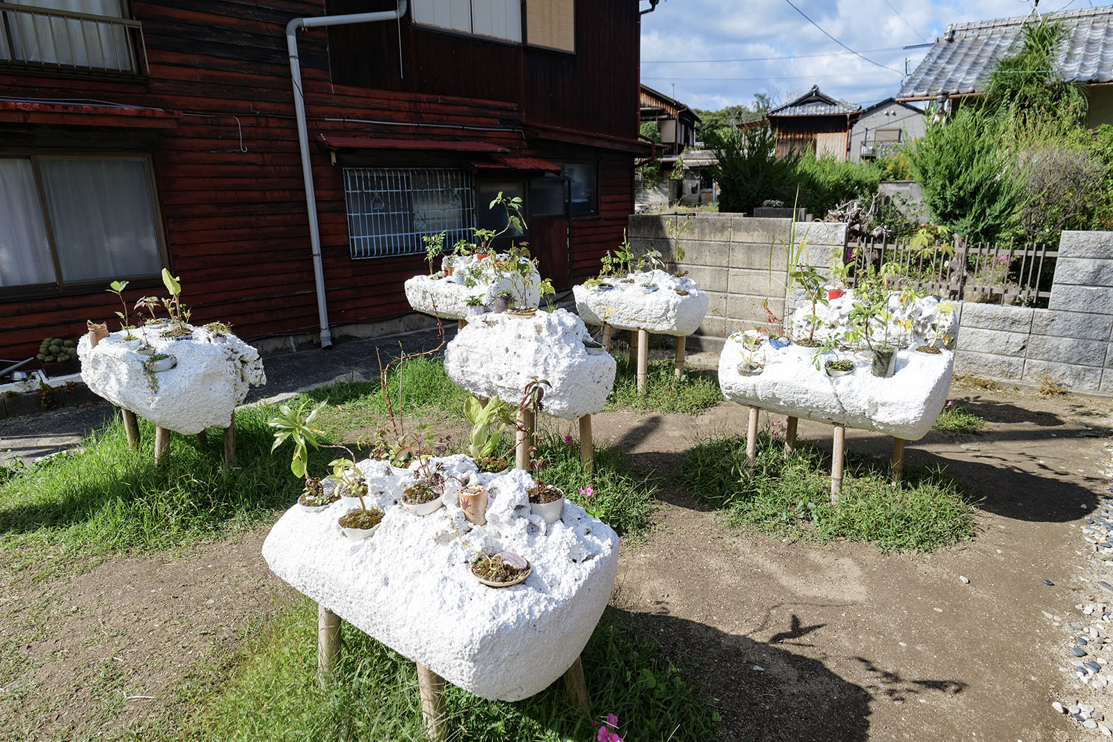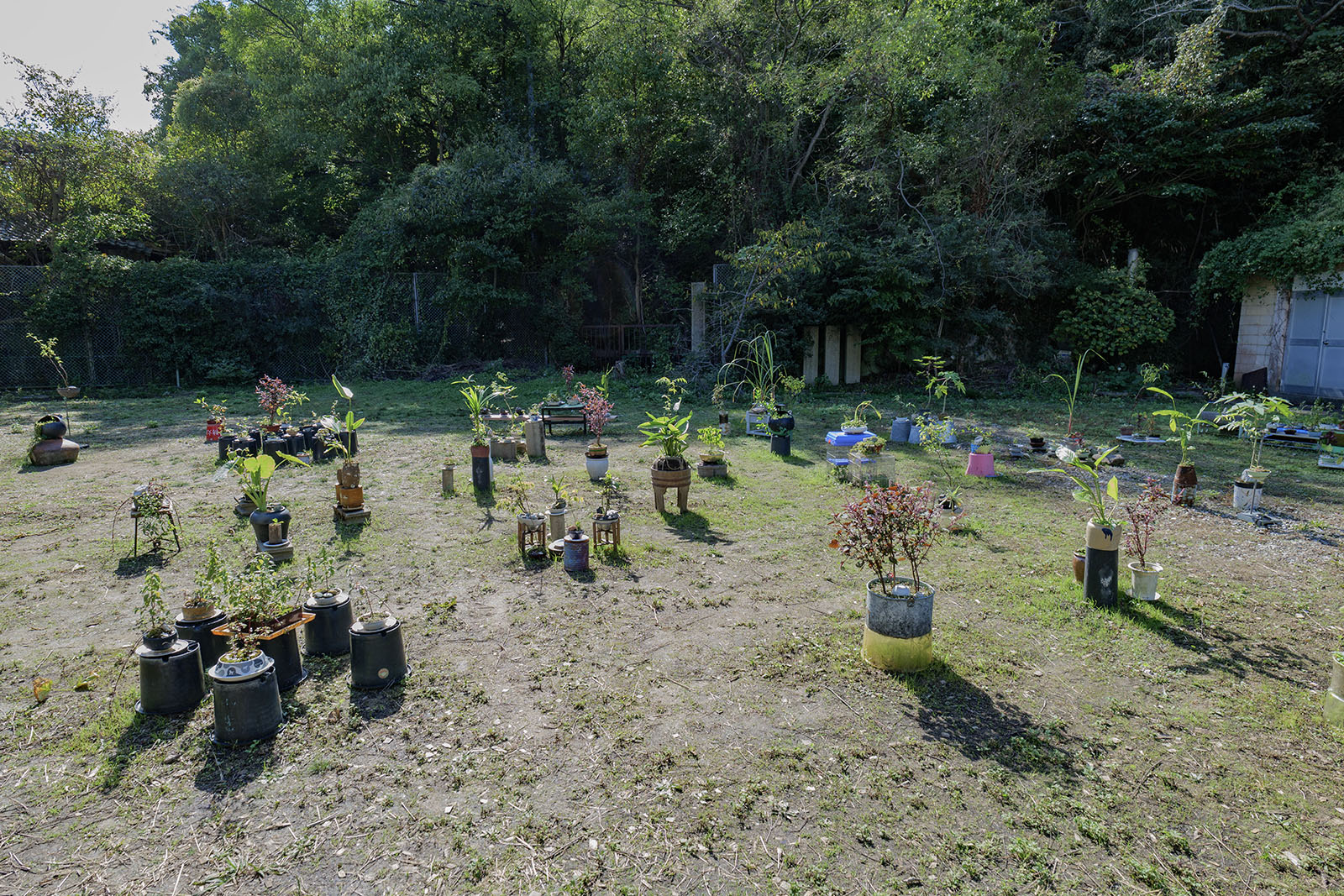 このたくさんの鉢植えが置かれたエリアも作品の重要な一部。