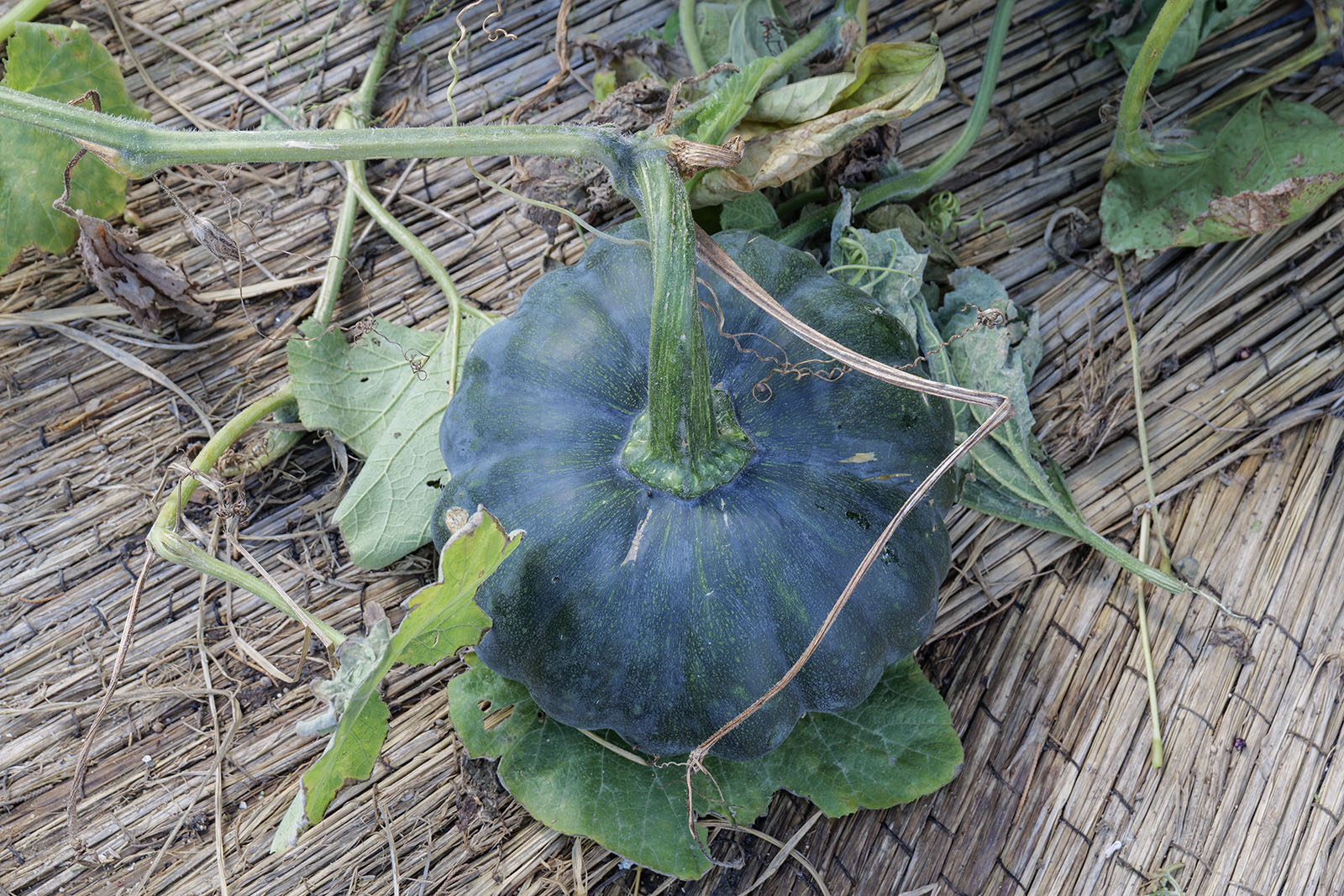 よく見るとヘチマがたくさんなっているし、足元にはカボチャも。