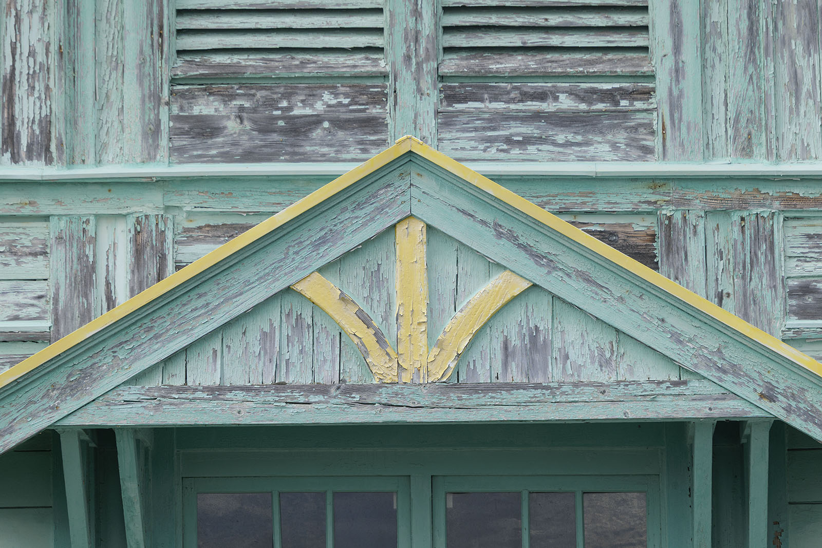 「粟島海洋記念館」の一部。不思議な色使いです。