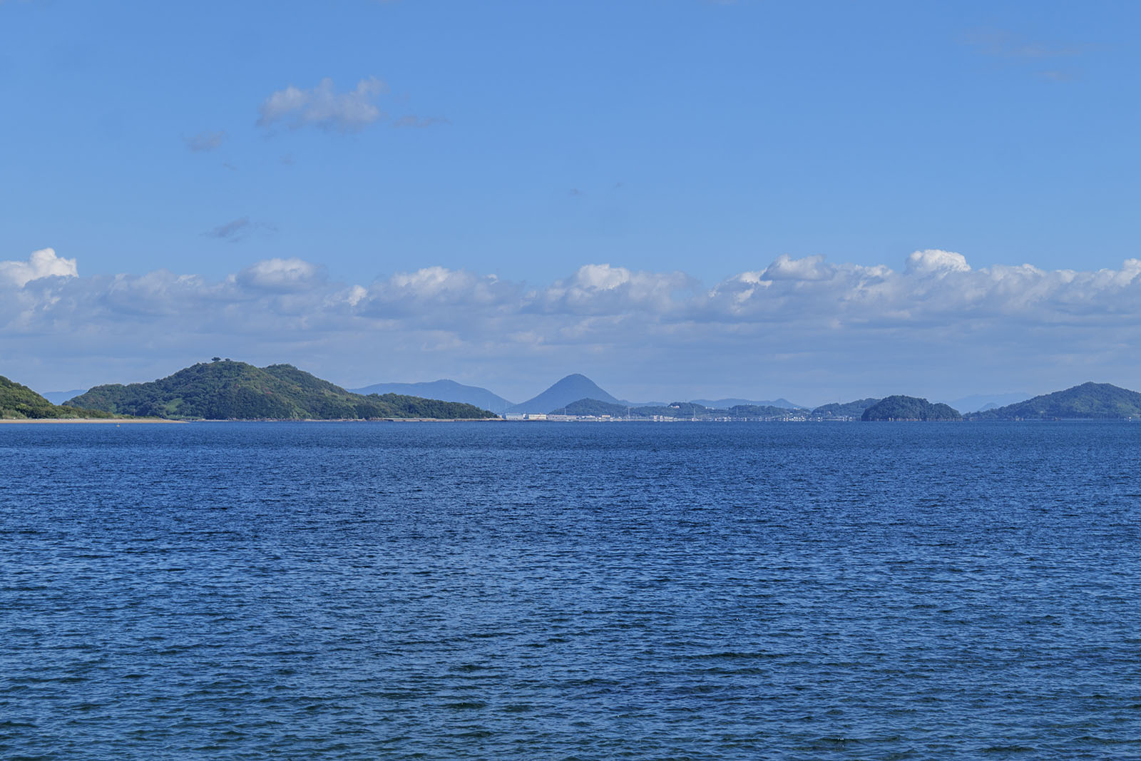 画面の中央にある島が志々島で、瀬戸大橋も見えています。