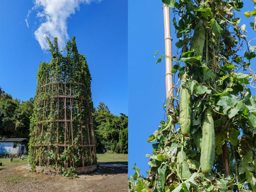 美術作品として少し距離を置いて見ていた人も、ヘチマなどを見つけることでひと騒ぎ、会話が生まれます。作品を眺めながらお弁当を広げている人もいたりして、ボーダーレスな交流の場という目的はある程度達成されたんじゃないでしょうか。