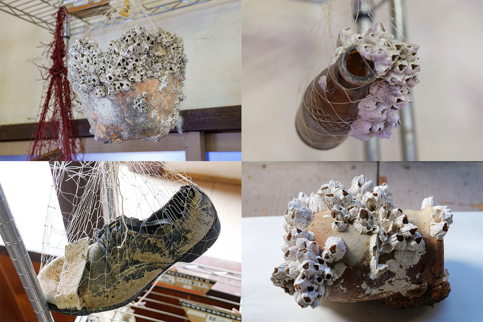海底から引き上げられたものなどにコメントをつけて展示した作品です。