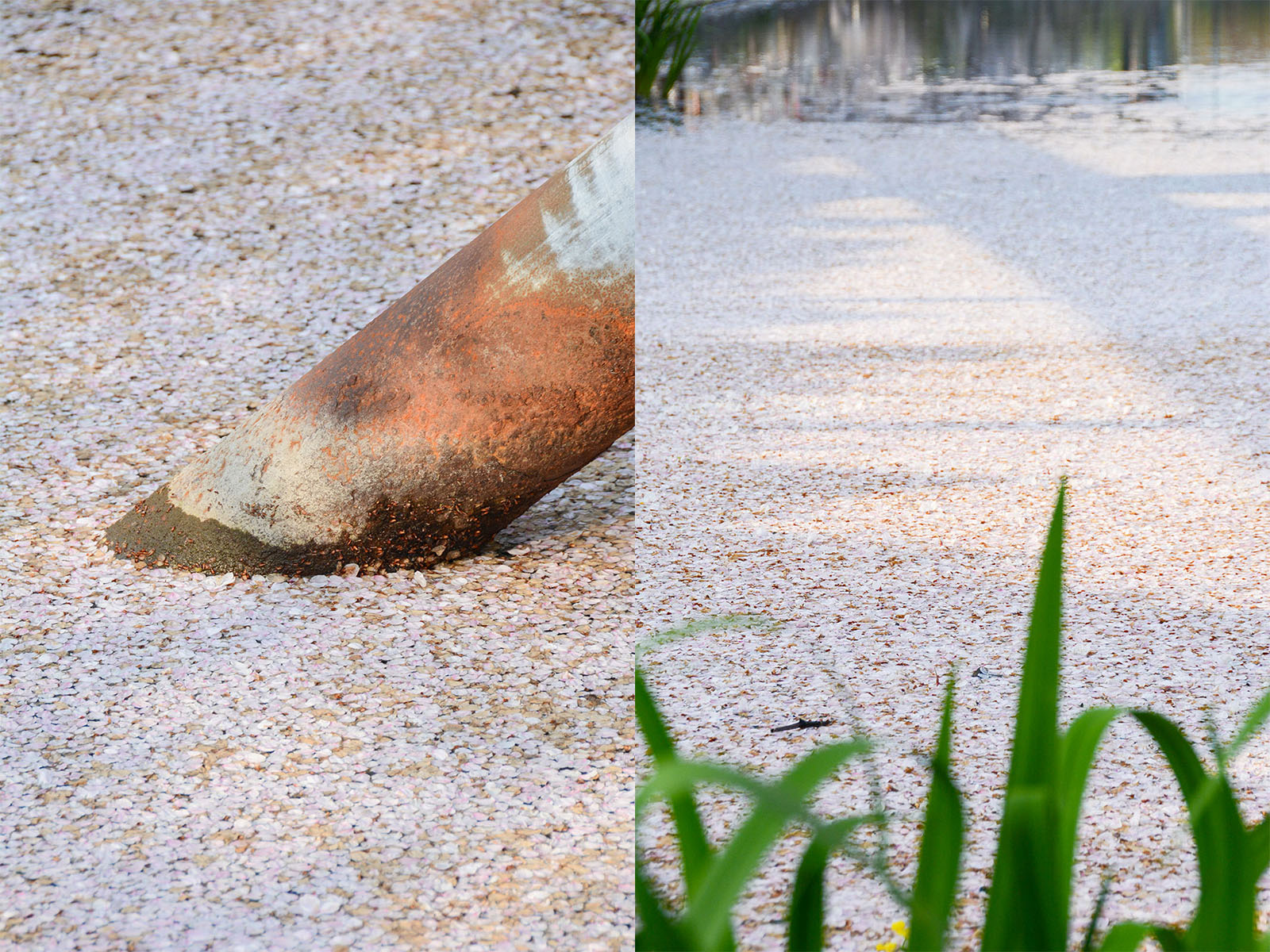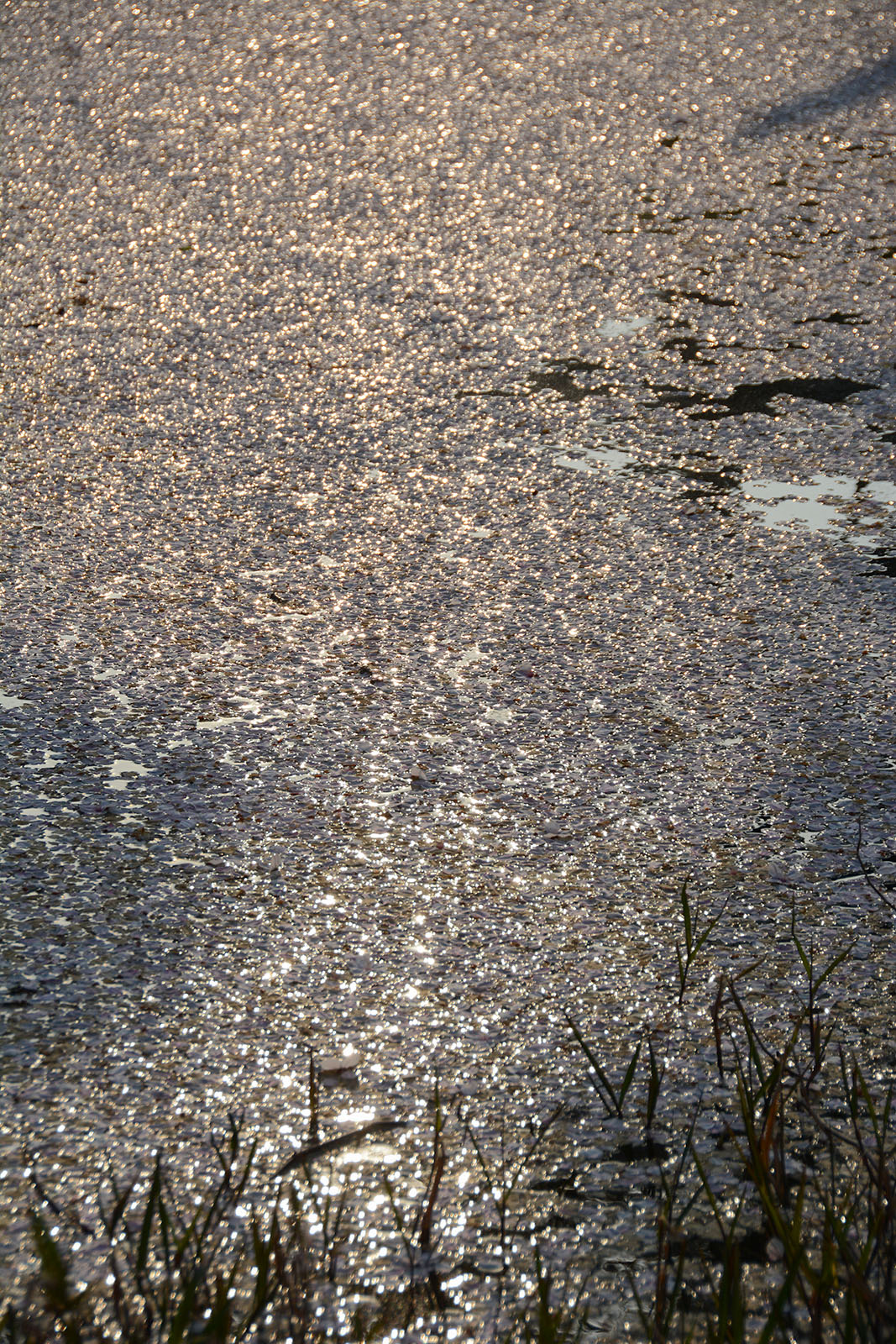 難しいですが、散ってすぐのタイミングだと明るいピンクの水面を見ることができます。
