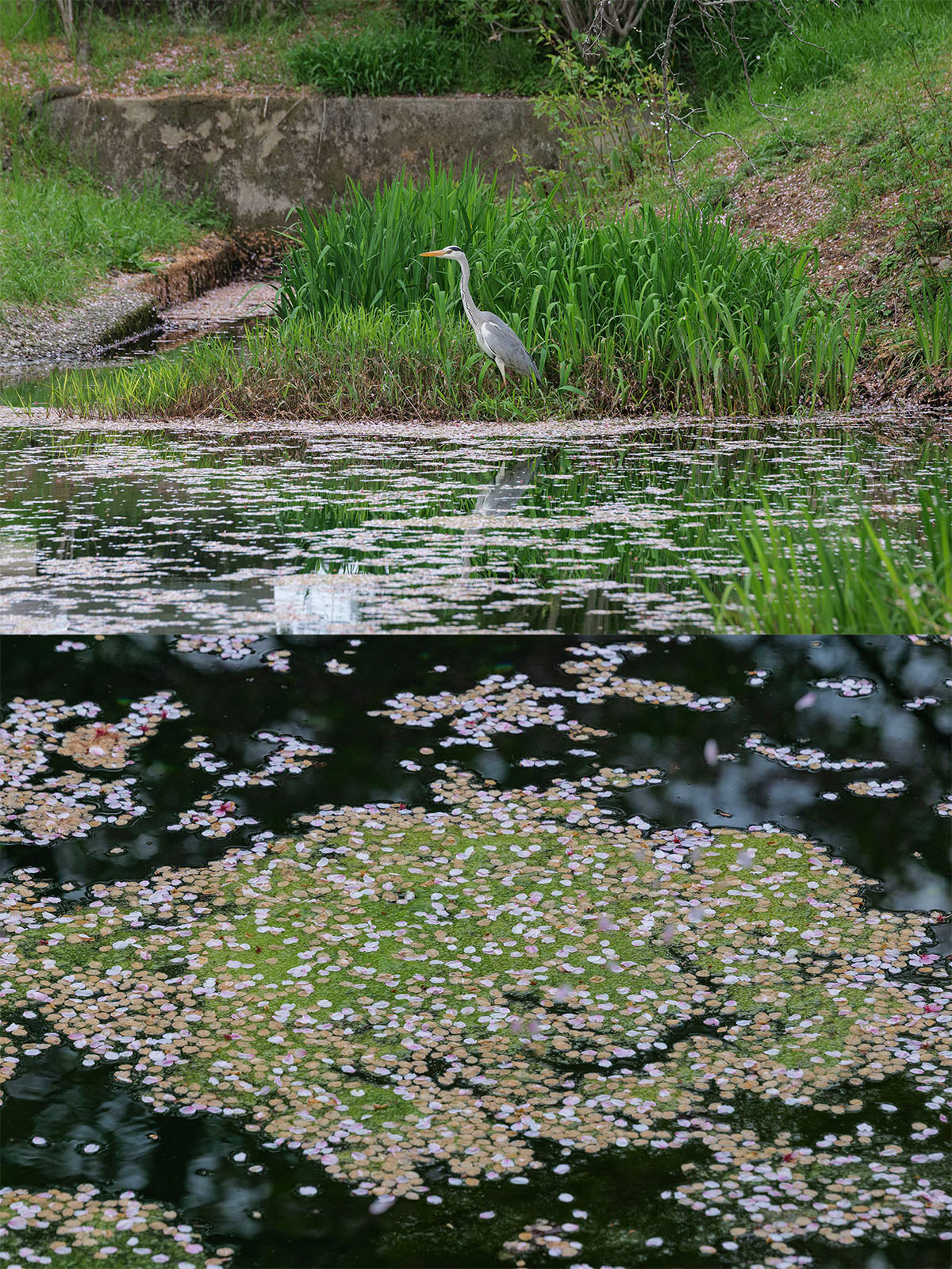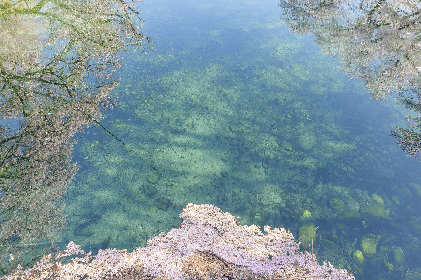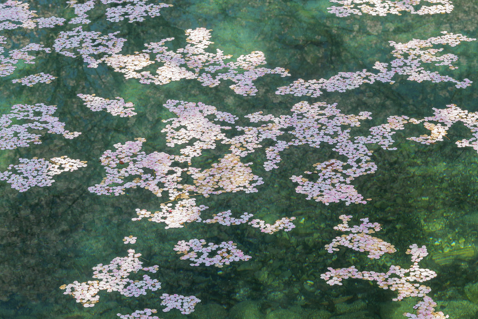 満開の時期はもちろん、散った花びらが徐々に水面を埋め尽くしていく様子も見どころなんです。