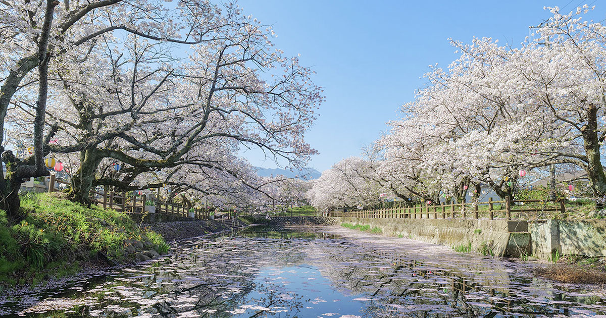 満開の時期はもちろん、散った花びらが徐々に水面を埋め尽くしていく様子も見どころなんです。