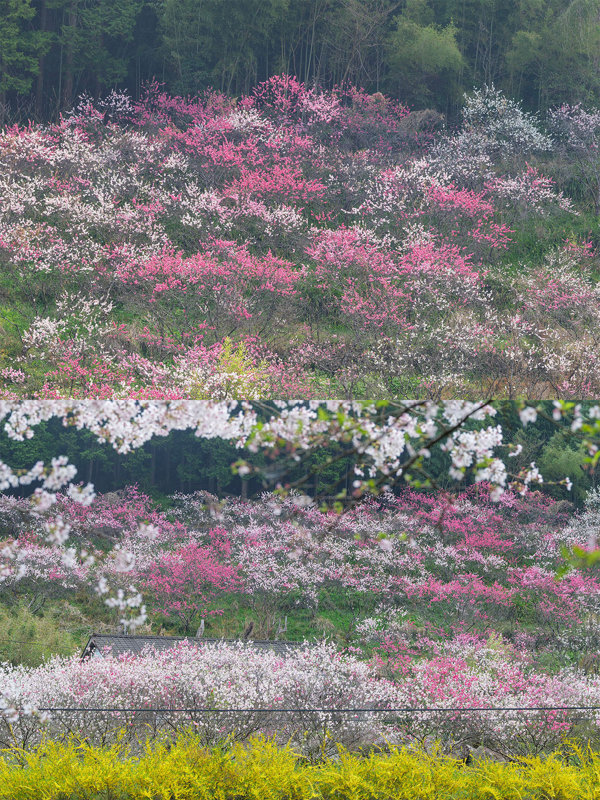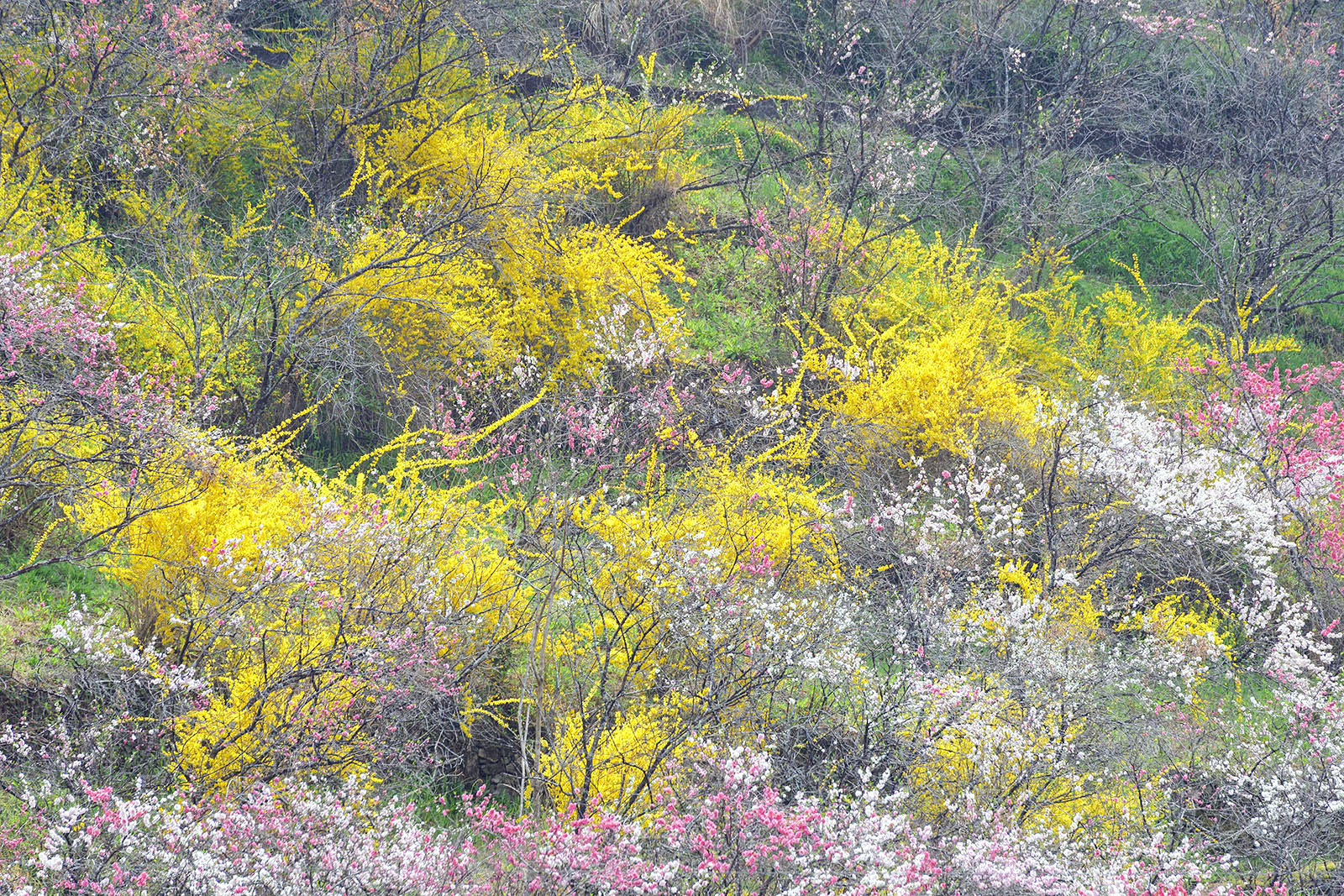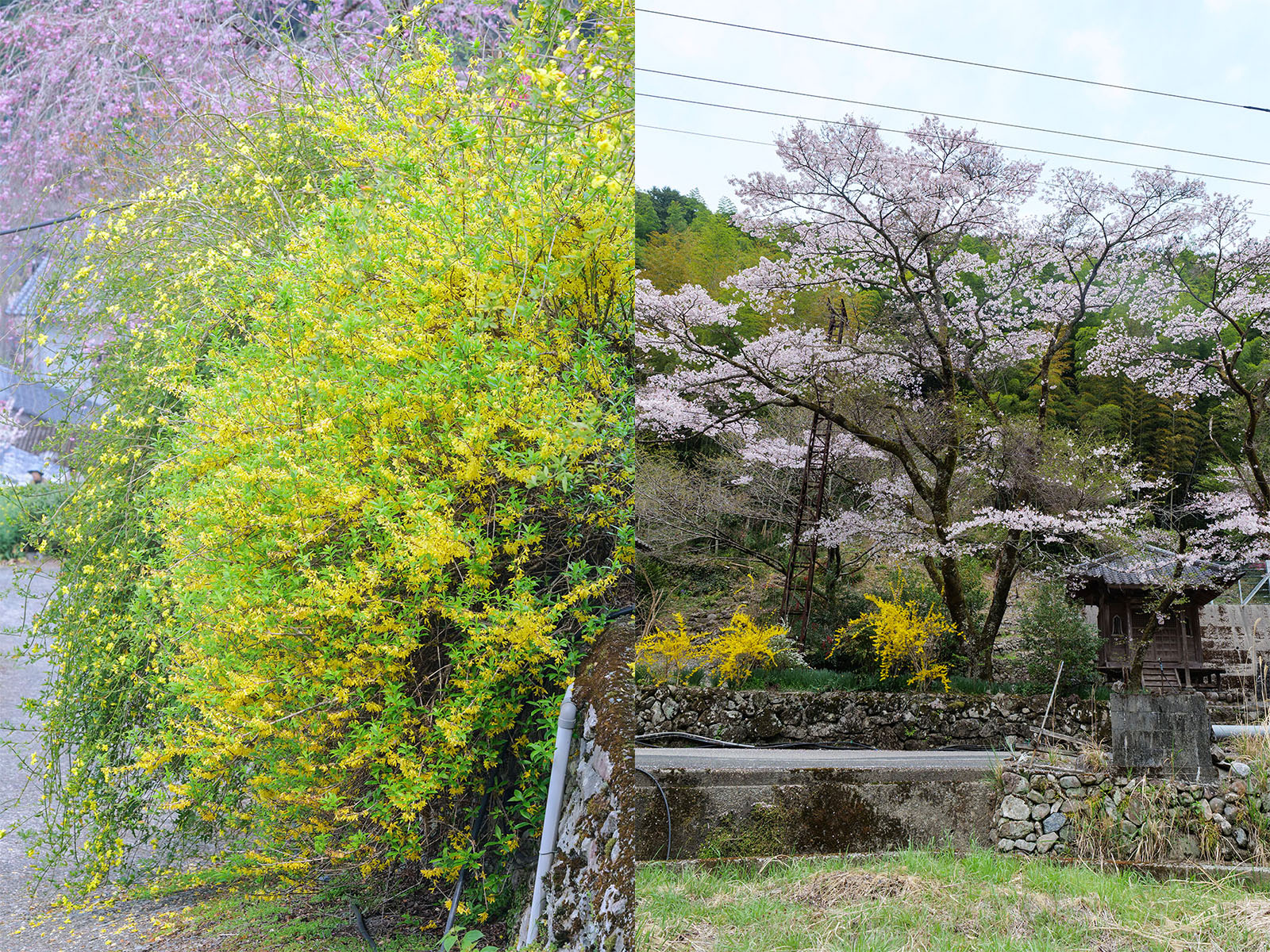 花桃を中心に桜やレンギョウ、山吹、菜の花などが
