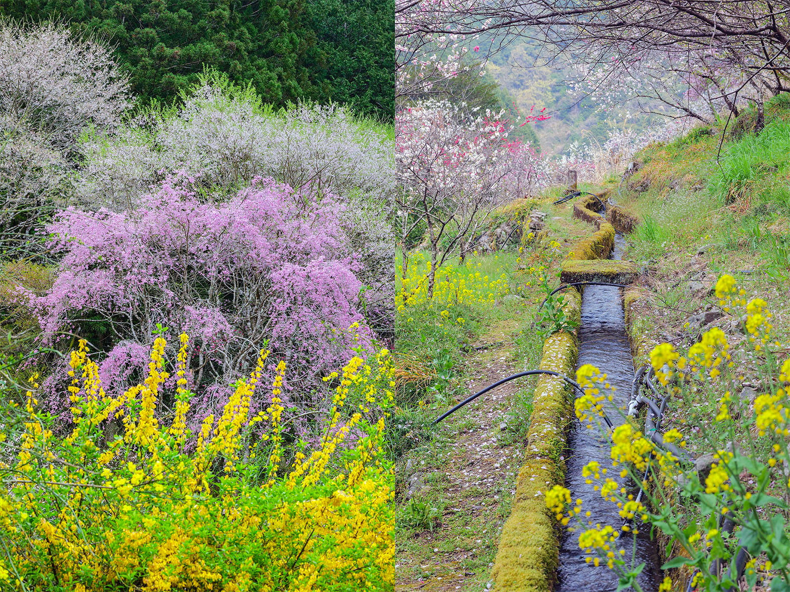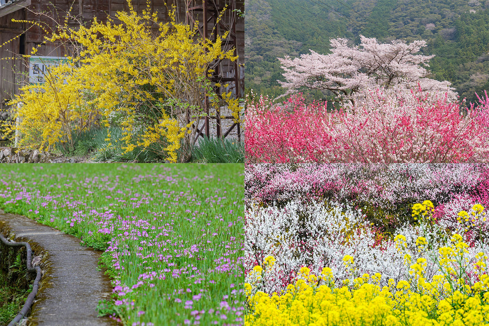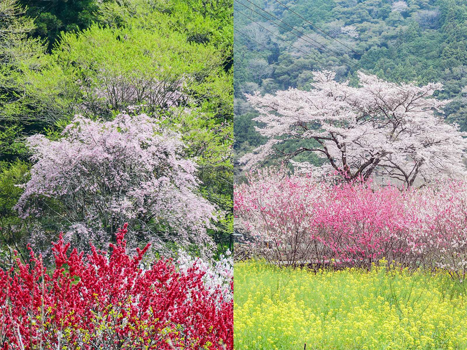 花桃を中心に桜や菜の花、レンギョウなど様々な花々が一斉に見頃を迎えます。