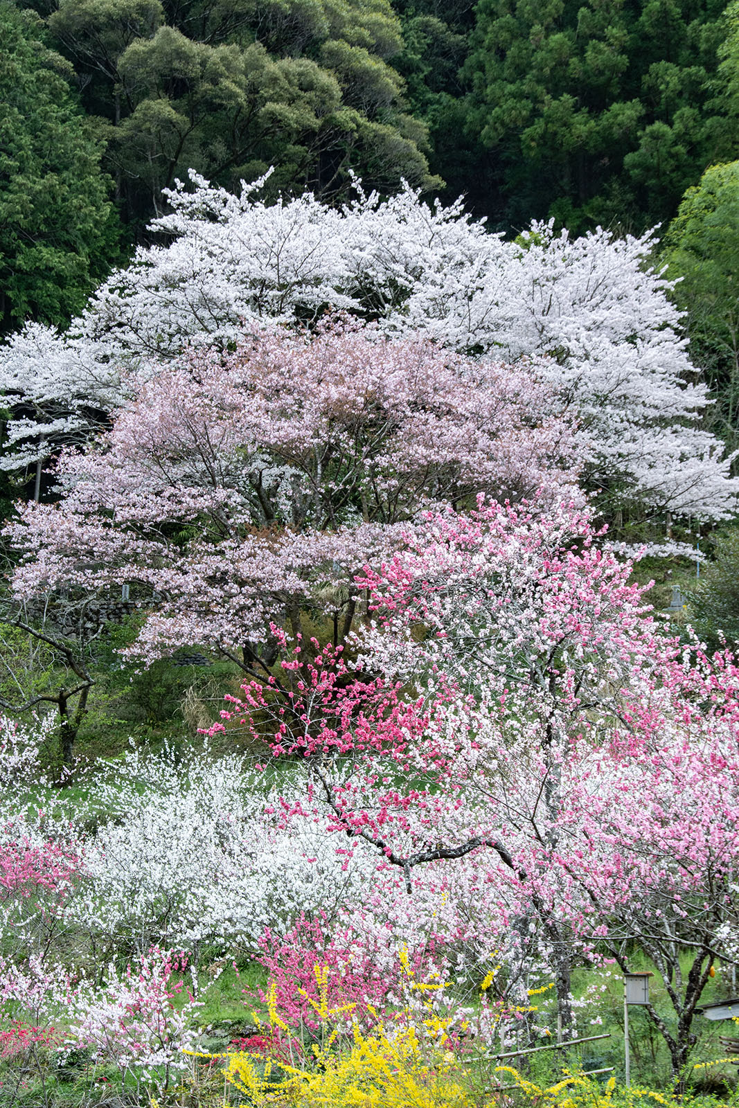 花桃を中心に桜やレンギョウ、山吹、菜の花などが