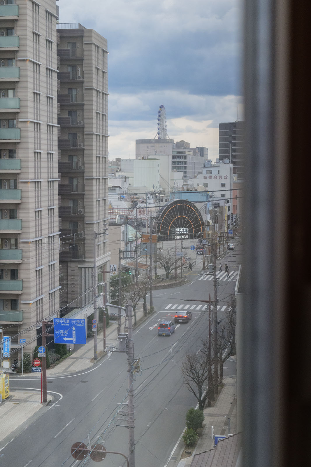 ホテル前の「千舟町通り」は片側2車線の広い道ですが交通量もほどほどで走りやすいですし、