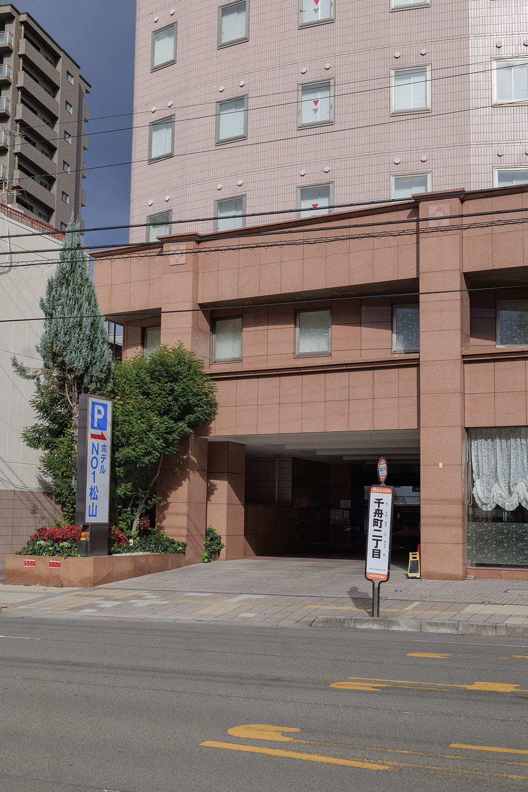 「ホテルNo.1松山」は松山を代表する2つの大きな商店街「大街道」と「銀天街」のちょうど中間あたりにあるホテルで、立地がいいと言えばいいんですが、ちょっと微妙。