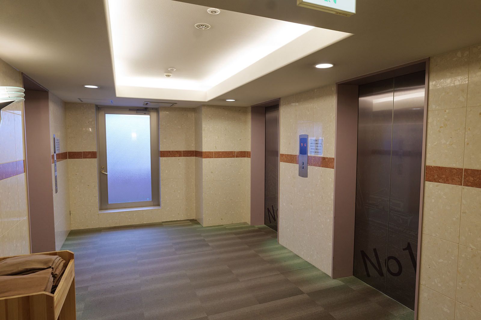 建物に入ってすぐのところにあるエレベータで1階にあるフロントへと向かいます。