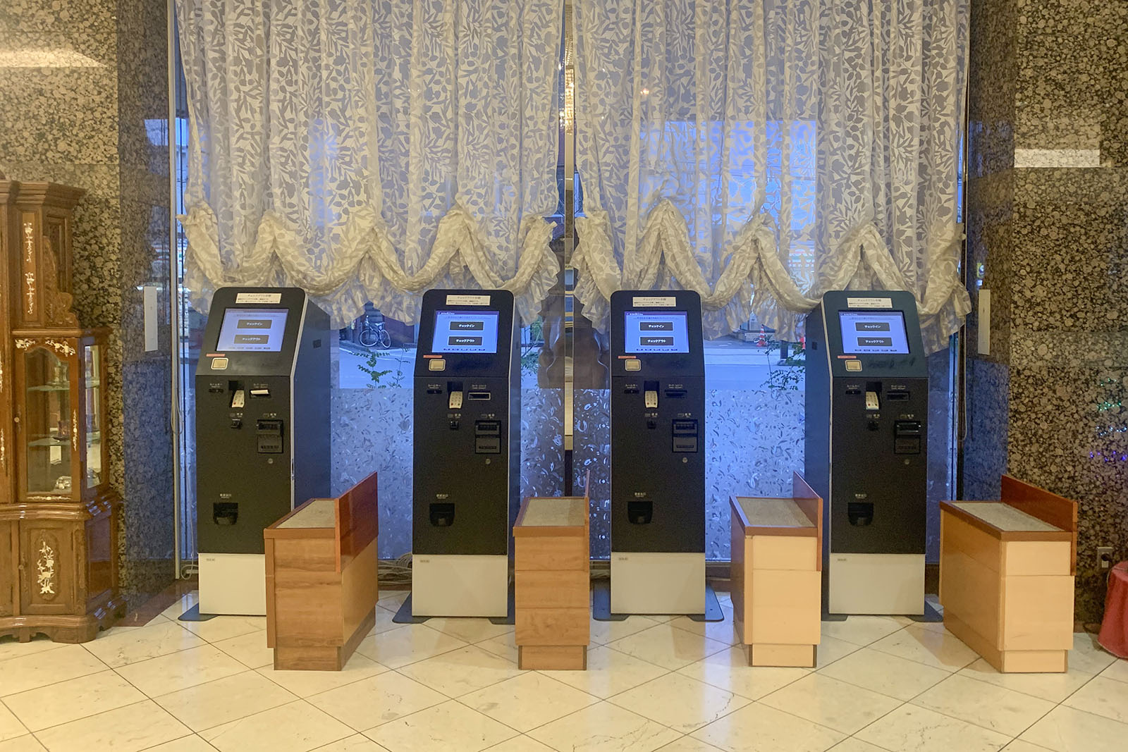 ルームカードを受け取り、自動精算機へと向かいます。