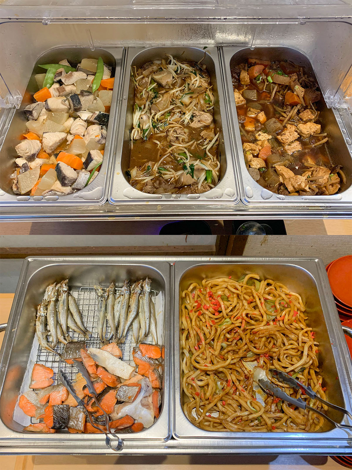 ※上記朝食バイキングの写真はは2日分の朝食を撮影、重複を避けながら掲載したものです。