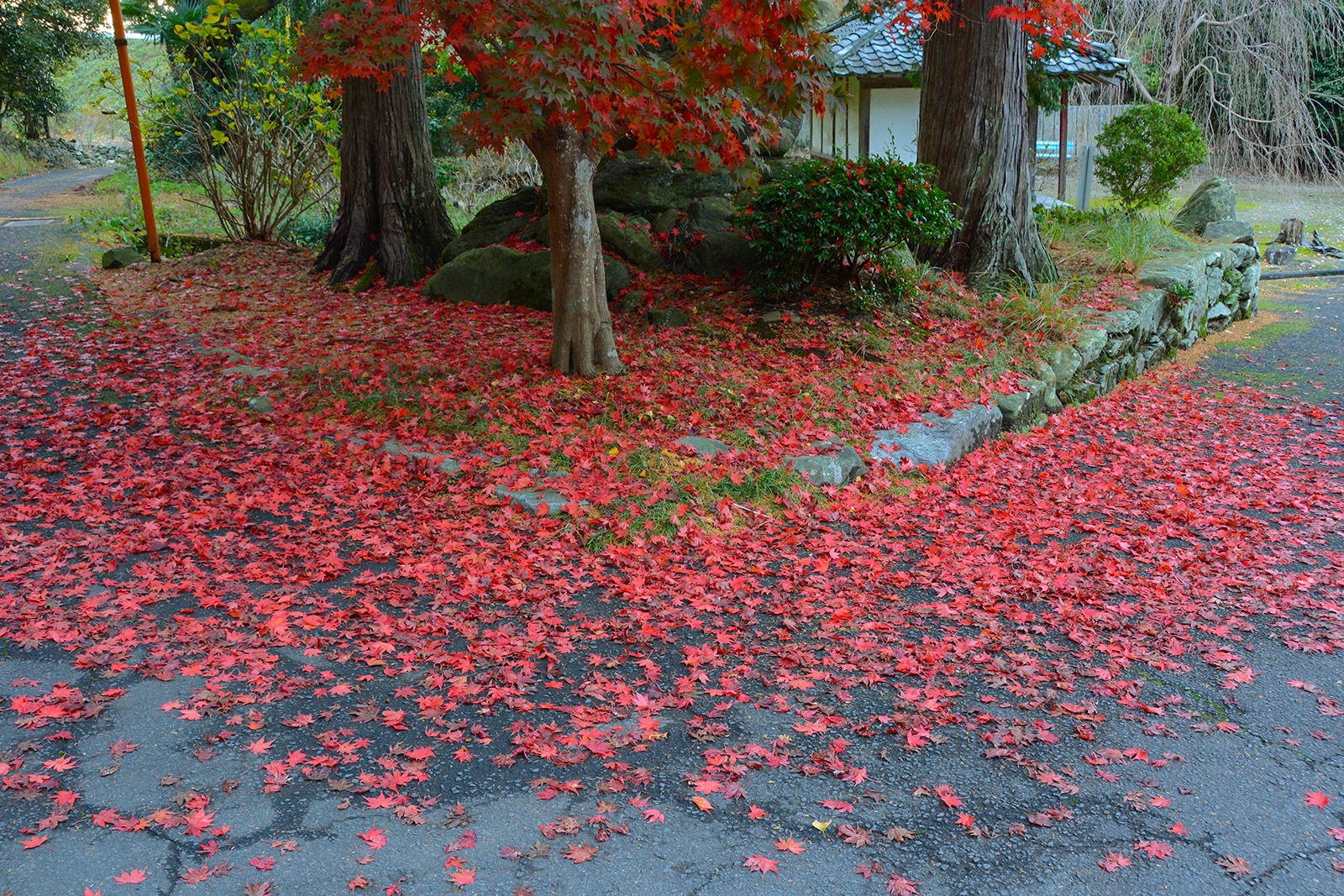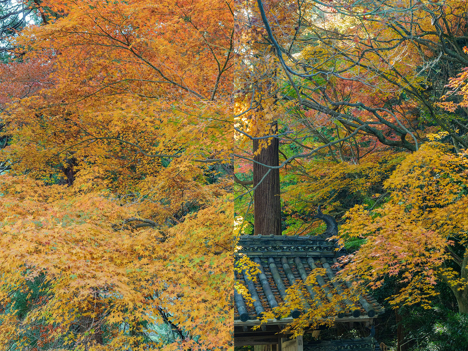 本堂から少し南に進んだ先にある巨大なモミジです。