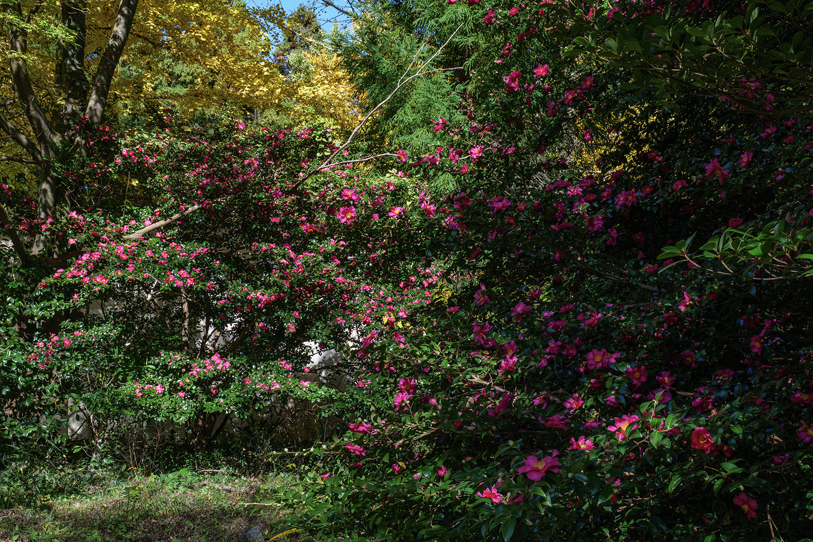 迂回路のスロープを歩いているときに見つけたサザンカの集団。