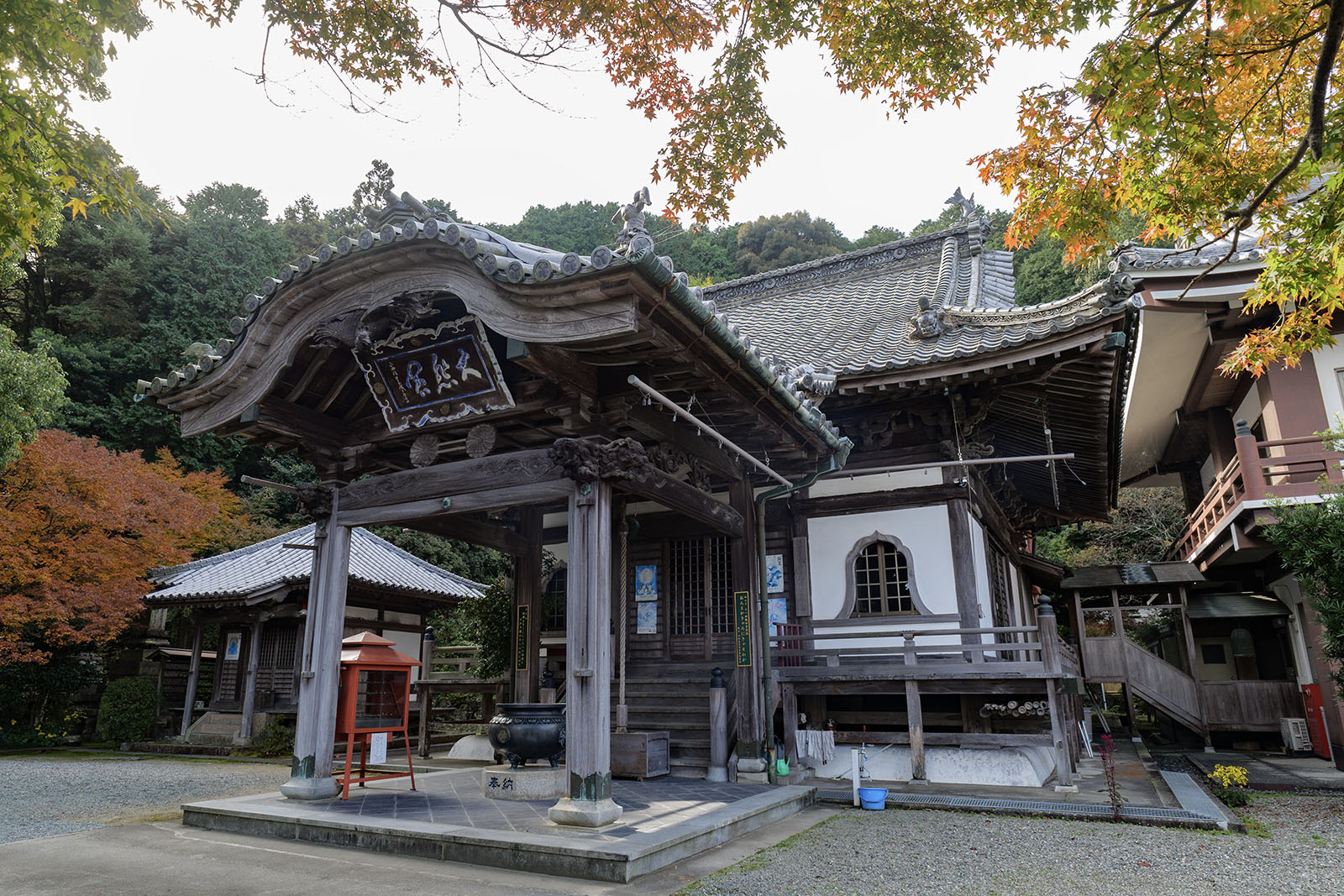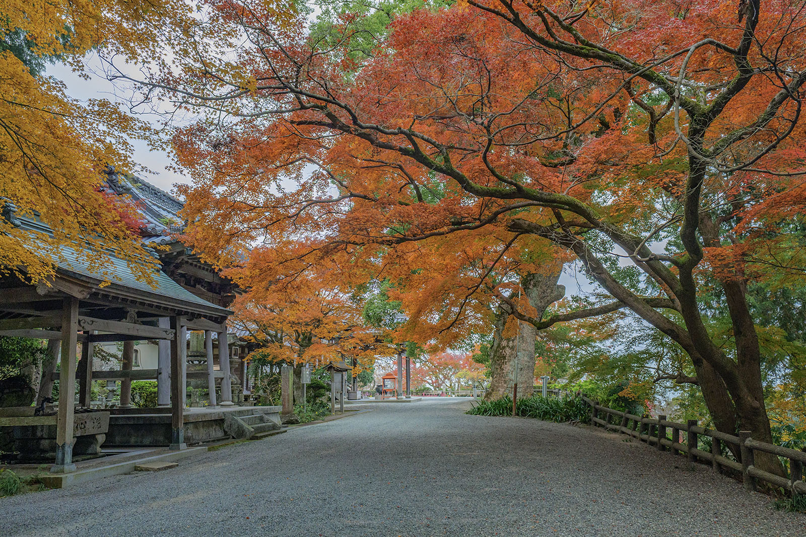 平地から山に入ってすぐの所、山裾から中腹にかけて境内が広がっています。