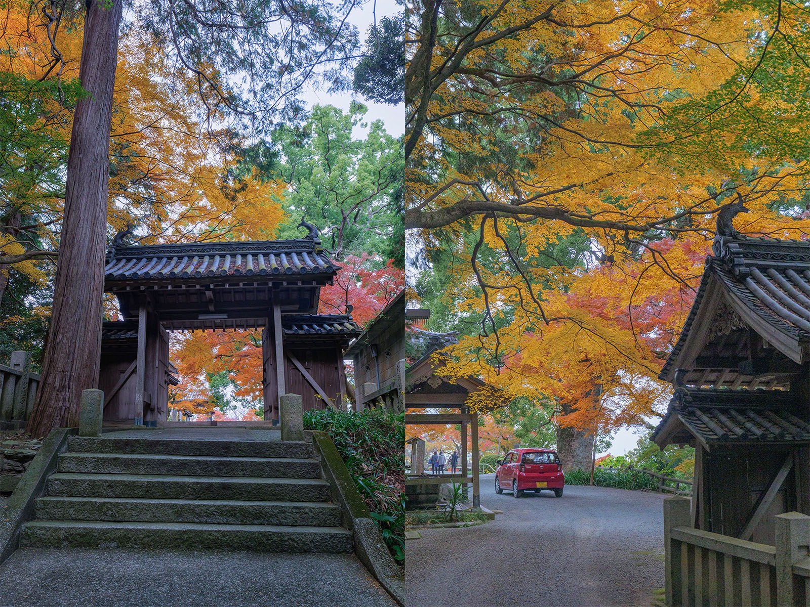 本堂南側の小さい門があるあたりで撮影。車で登って来られている方もいるみたいでした。
