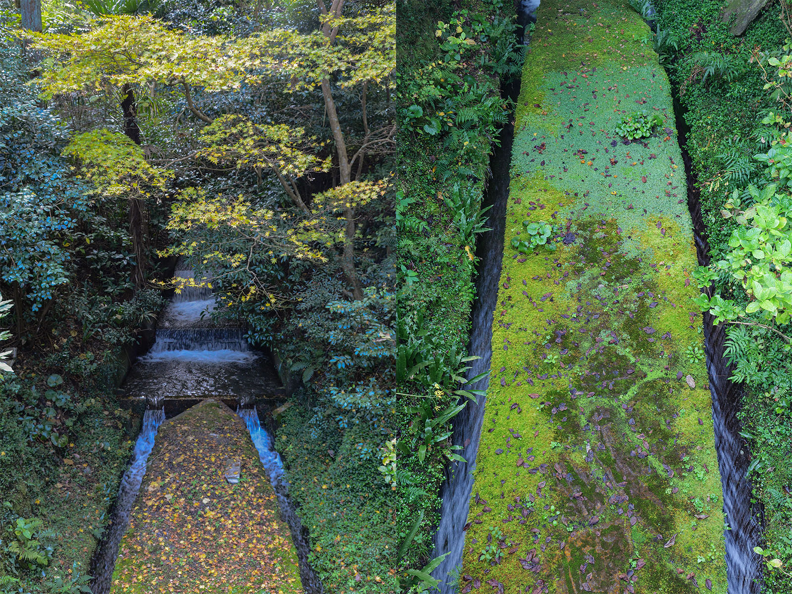 石橋の上に立って下を見るとこんな不思議な水路があります。